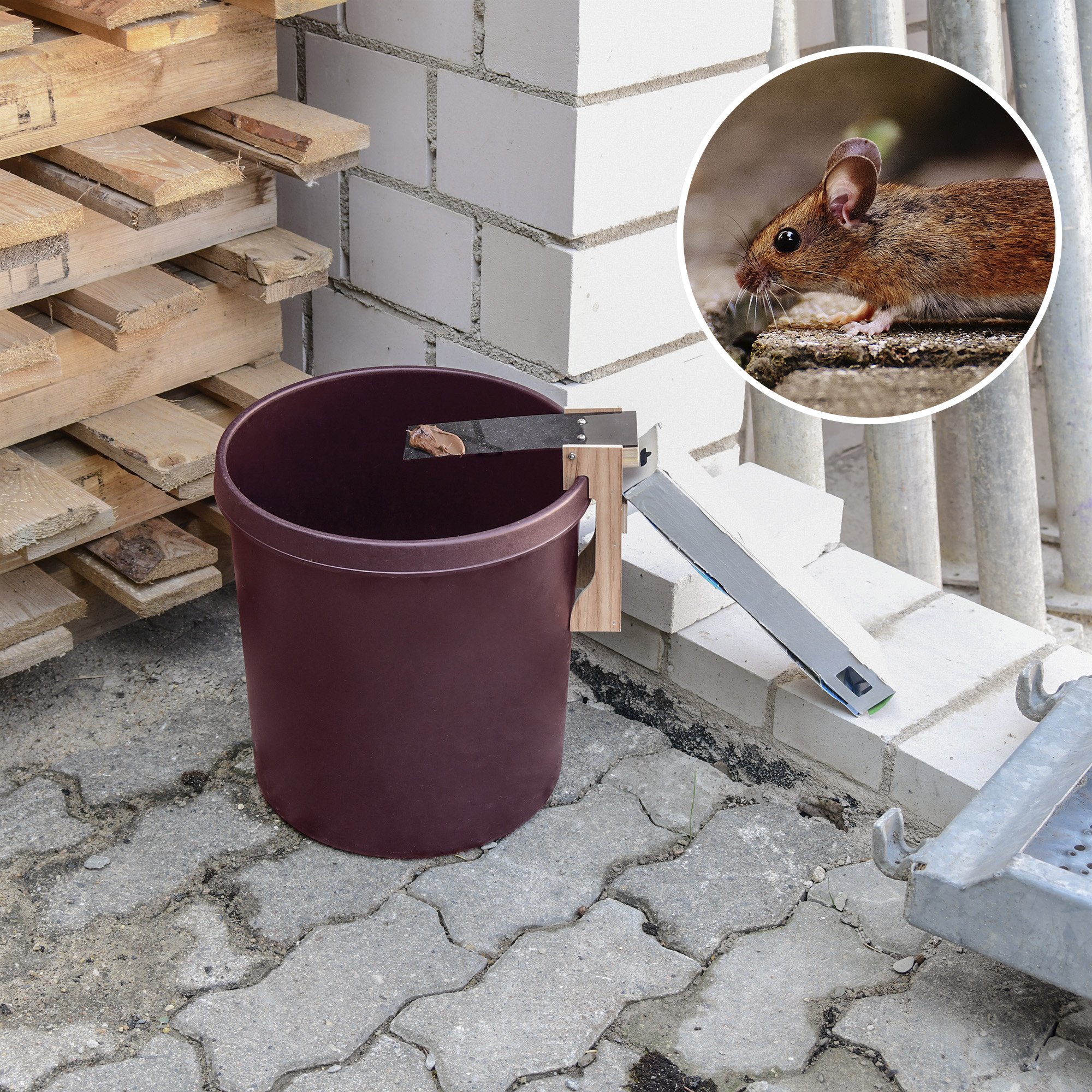A csalit a billenő nyel elejére kell helyezni, a csúszós felületről a rágcsálók libikóka elven az alattuk lévő vödörbe esnek.