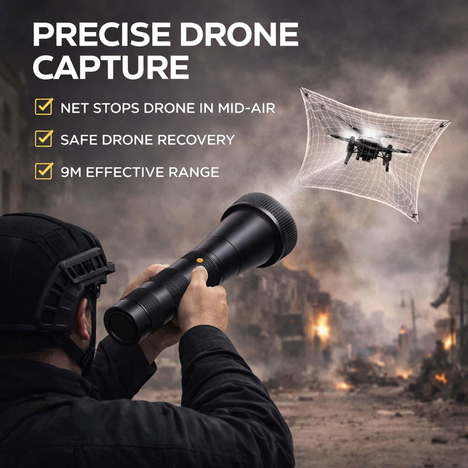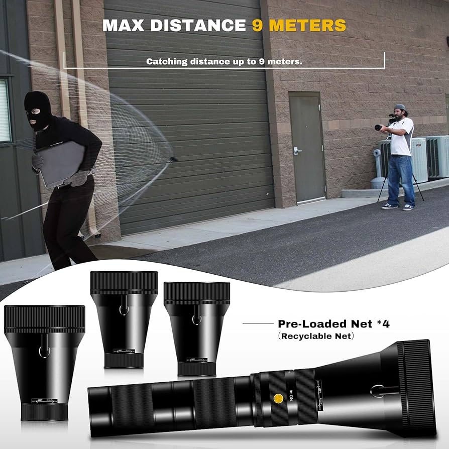 NEM tekintik fegyvernek vagy pisztolynak. Nem tartalmaz lőport, robbanóanyagot vagy más veszélyes anyagot. A befogási távolság legfeljebb 9 méter.
