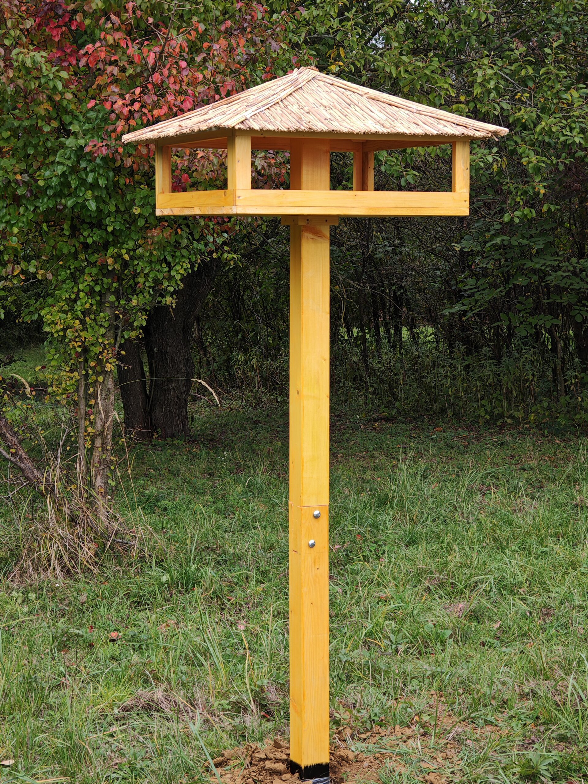 70×70 cm belső etetőtálca méretű, 96×96 cm tető méretű dúcetető, kétrészes oszloppal
